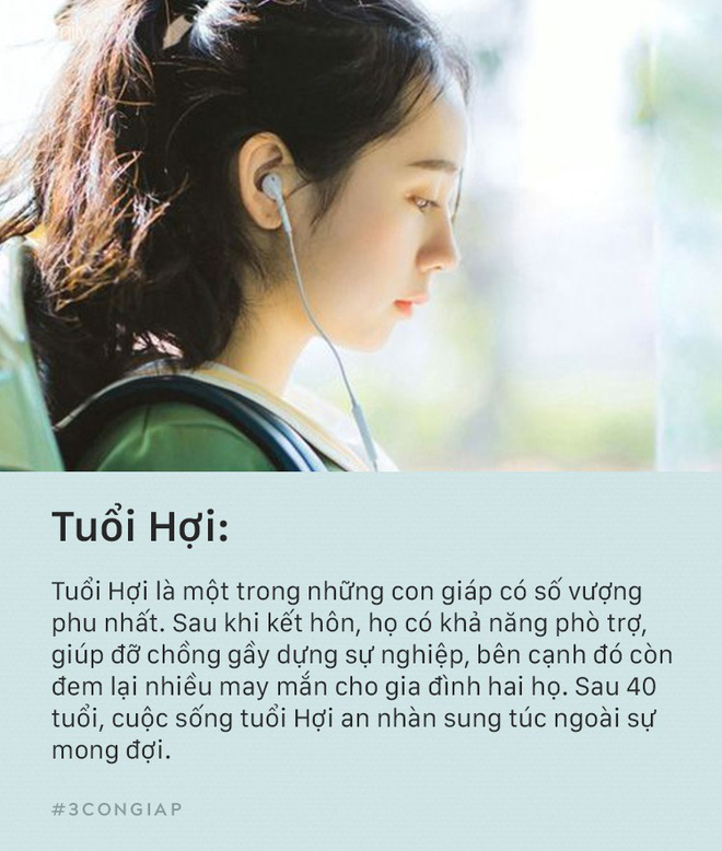 Phụ nữ tuổi Hợi là những người mang nhiều phúc khí và may mắn nhất. Bất kể cuộc sống thời trẻ như thế nào, nhưng đến hậu vận thì đa số họ đều được hưởng phúc đức và sự giàu có không ai sánh bằng. Trời sinh người phụ nữ tuổi Hợi hiền lành, nhân hậu, họ luôn giữ một tâm thế bình tĩnh khi đối mặt với những vấn đề khó khăn, nhờ vậy mà mọi thứ xung quanh đều được giải quyết êm đẹp, không để lại hậu quả đáng sợ. Có thể nói, tuổi Hợi là một trong những con giáp có số vượng phu nhất. Sau khi kết hôn, họ có khả năng phò trợ, giúp đỡ chồng gầy dựng sự nghiệp, bên cạnh đó còn đem lại nhiều may mắn cho gia đình hai họ. Sau 40 tuổi, cuộc sống tuổi Hợi an nhàn sung túc ngoài sự mong đợi, chỉ cần ngồi không cũng hưởng được giàu sang phú quý.