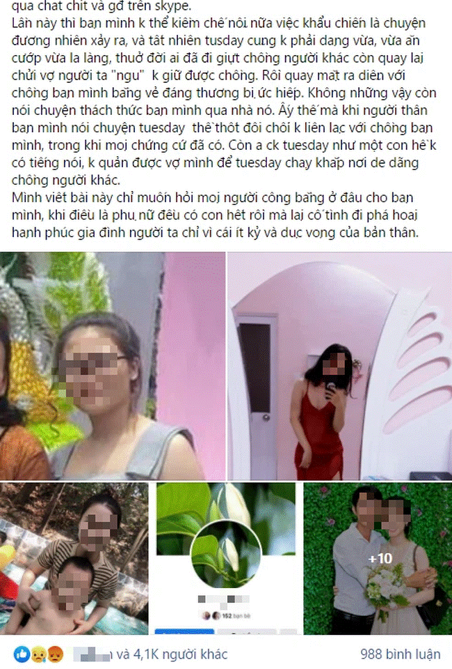 Ai cũng ngao ngán vì trong bài đăng ảnh đầu tiên là kẻ thứ 3 - ngoại hình thua kém rất nhiều cô vợ.