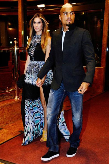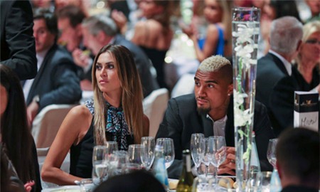 | Boateng và vợ sắp cưới xinh đẹp tay trong tay tới dự lễ trao giải dành cho quý ông tại Milan. Melissa khiến mọi người không thể rời mắt khỏi đôi chân thon dài và nuột nà trong bộ váy xẻ quyến rũ. |