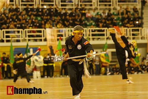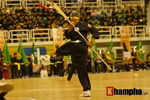 Dù chỉ còn một chân nhưng võ sư Tạ Anh Dũng với bài múa đại đao đã làm bạn bè quốc tế trầm trồ trong đêm khai mạc giải võ cổ truyền Việt Nam tại TP.HCM