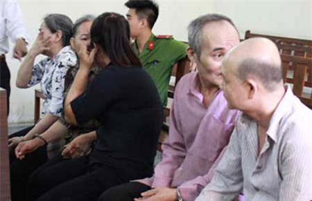 Các bị cáo trong giờ tòa nghị án. |