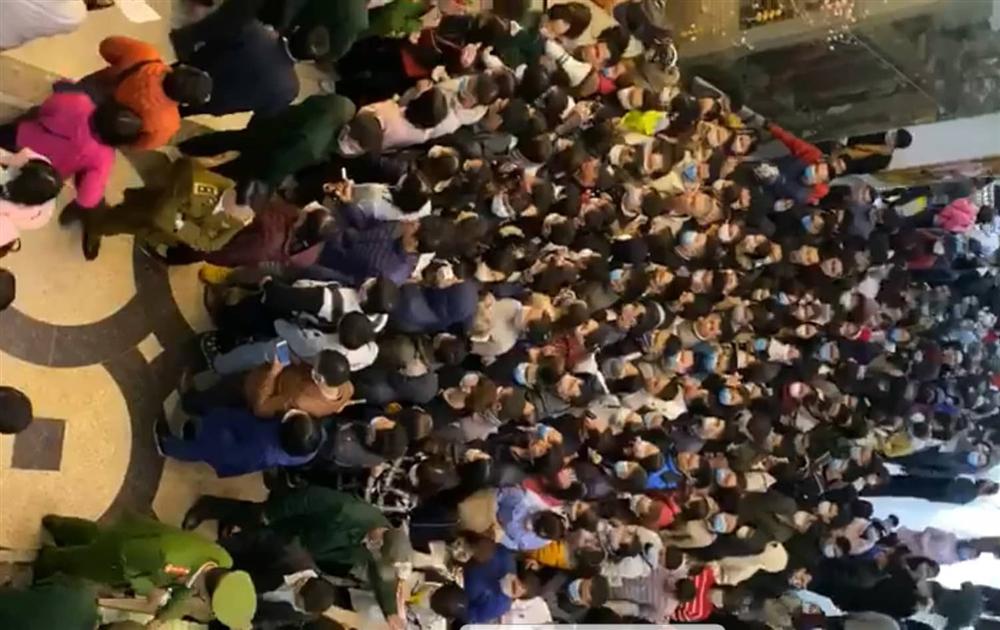 Một số thời điểm xảy ra tình trạng hỗn loạn. Lực lượng chức năng phải dùng loa công suất lớn để ổn định người dân.