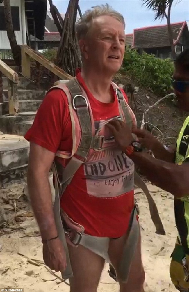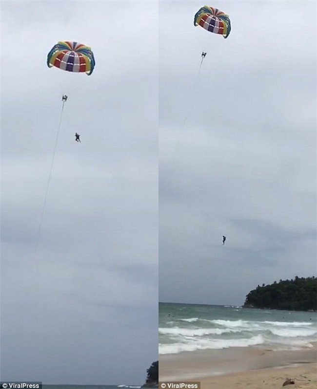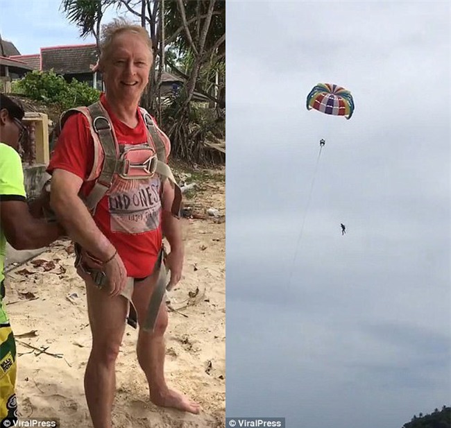 Ông Roger John Hussey đã mỉm cười thật tươi với vợ, người đang cầm máy quay, trước khi tham gia trò dù bay mạo hiểm trên bãi biển Kata, Phuket vào ngày 12/7 vừa qua. Tuy nhiên, chỉ ít giây sau khi chiếc dù được thả bay lên độ cao 30m, du khách này đã đột ngột bị rơi xuống biển trước sự hoảng sợ của vợ và rất đông du khách có mặt tại bãi biển.