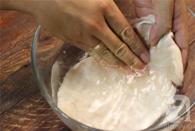 ![]() | ![]() Sơ chế kĩ tai heo bằng giấm và muối hạt. Lưu ý cạo long và chà sạch các mảng da vàng. |