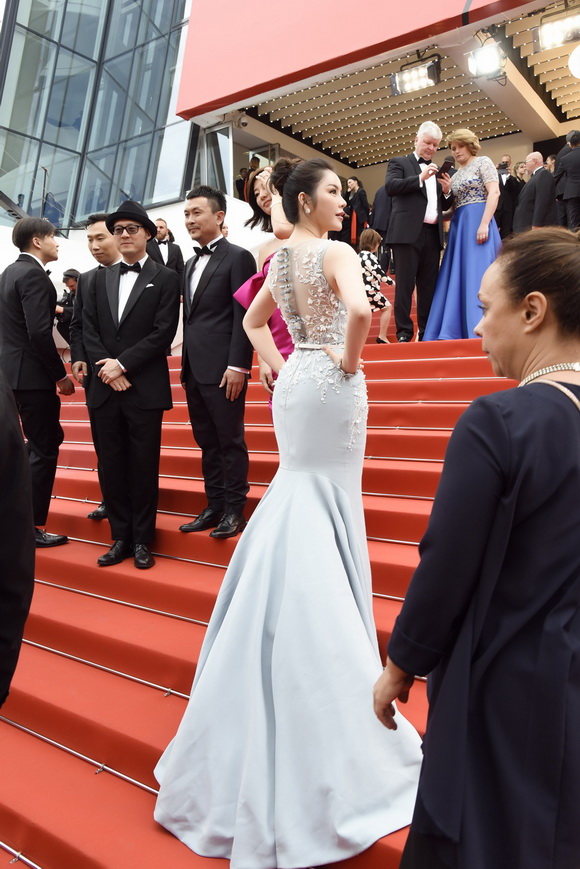 Ngày thứ hai, Lý Nhã Kỳ xuất hiện với thần thái kiêu sa của một 'công chúa' trên thảm đỏ LHP Cannes 2017.