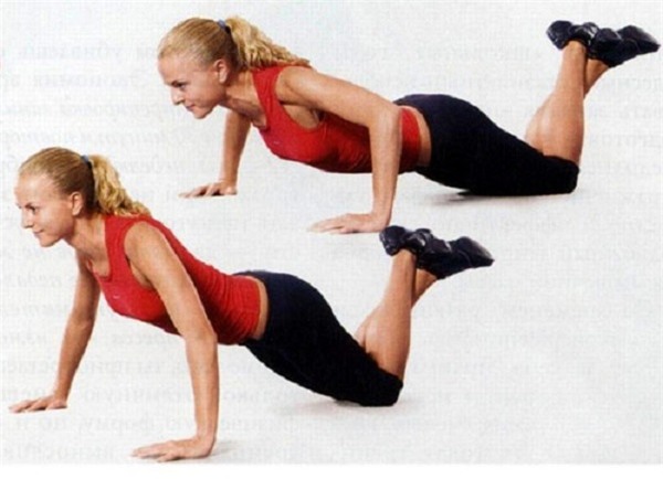 Đây là phương pháp chống đẩy mới, bạn giữ cơ thể ở vị trí chống đẩy nhưng đầu gối trên mặt đất. Từ từ khuỵu tay xuống dưới, ngực hướng xuống mặt đất sau đó trở về tư thế cụ. Cứ thực hiện động tác 3 lần, ít nhất lặp lại 15 lần mỗi phiên tập.