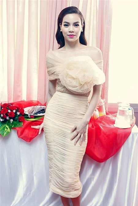 Tuy nhiên, khi biểu diễn trên sân khấu hoặc tại cánh gà các chương trình ca nhạc, game show, "bà hoàng showbiz" thường khiêm tốn hơn với vẻ manh mai, thon thả và đôi khi là cả sự gầy guộc.
