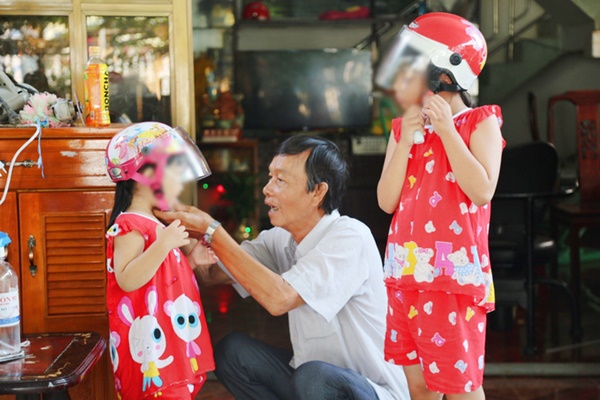 Ôm chầm lấy ông nội, M.T – M.P ngây ngô nhìn mọi vật xung quanh, dường như 2 chị em vẫn chưa cảm nhận hết nỗi đau đớn mà gia đình con đang phải gánh chịu.