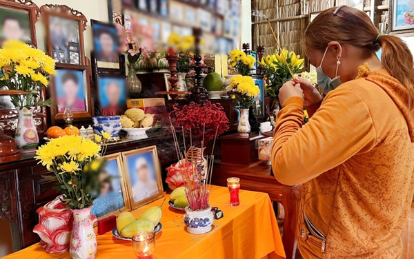 Thắp nén hương lên bàn thờ vợ chồng 2 đứa em ở chùa, chị Nguyễn Ngọc Châu (chị gái anh Đ.) không cầm được nước mắt. Sau khi khám nghiệm tử thi, gia đình cũng nhanh chóng tổ chức hỏa táng và đưa tro cốt 2 vợ chồng anh Đ. về gửi ở ngôi chùa gần nhà. Sự ra đi đột ngột của 2 đứa em khiến chị Châu chết lặng.