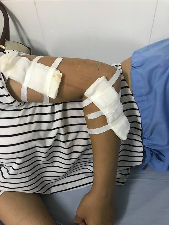 Trên cơ thể chị Ngọt chằng chịt vết thương ở tay, đầu, chân.