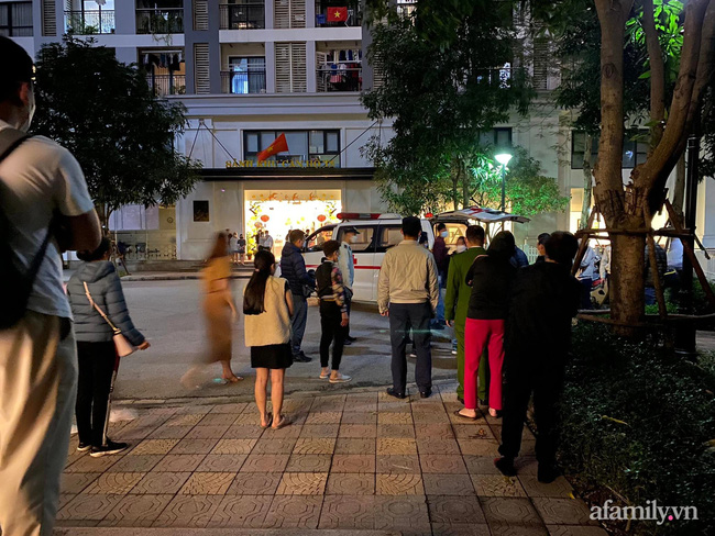 Nhiều người dân tập trung tại sảnh chung cư theo dõi sự việc
