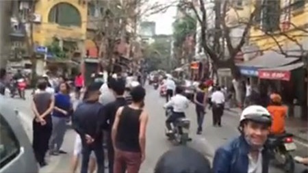 Người dân tụ tập trên phố Châu Long chứng kiến vụ việc. (Ảnh cắt từ clip) |