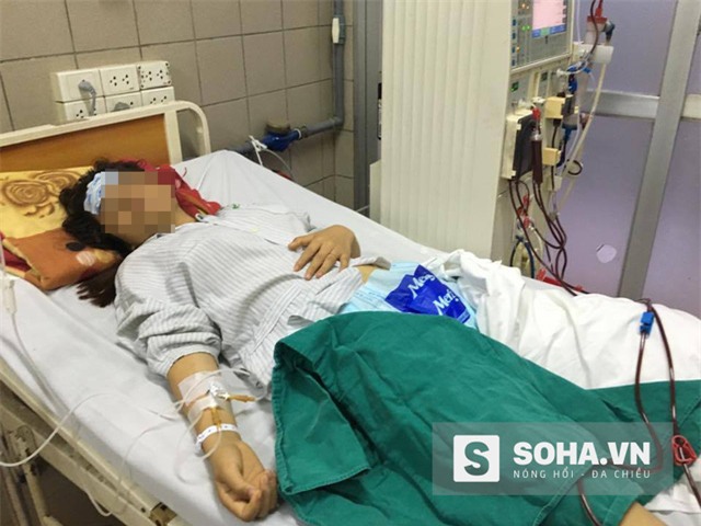 Chị Lê Thị T đang được điều trị tích cực tại Bệnh viện Bạch Mai. |