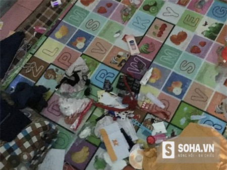 Bên trong phòng trọ của Viết A và chị T thuê trọ đồ đạc vương vãi khắp nơi |