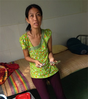 Sáng 28-5, chúng tôi đến gia đình chị Tú cũng là lúc chị đang ngủ mê man sau khi uống thuốc. Lúc này anh Trí vừa đi chợ về. Nấu cơm xong, anh Trí vội vàng đi giặt quần áo. Phải đến gần 13g chị Tú mới tỉnh dậy để ăn cơm.