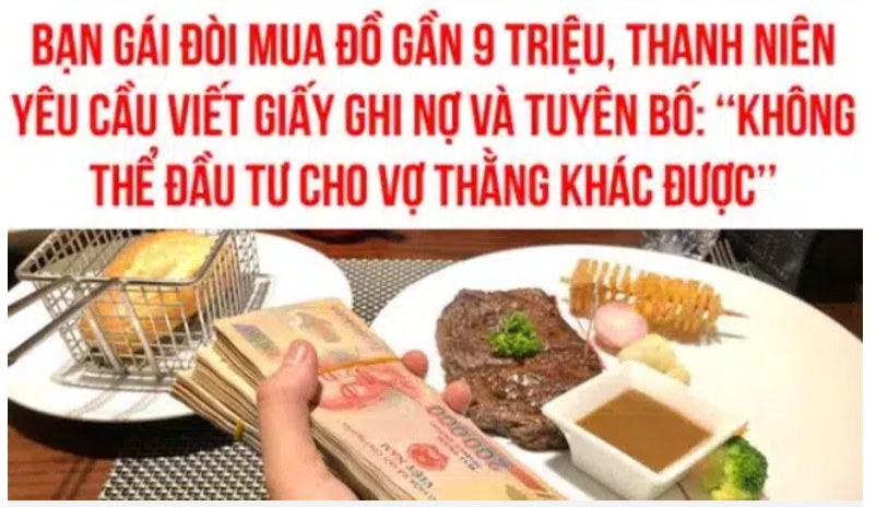 Dần dần, người ta chia làm 2 phe. 1 bên là "chỉ có đàn ông vô dụng mới thấy đàn bà thực dụng". Bên còn lại là "đã yêu thì tự biết tiết kiệm cho nhau, không đòi hỏi vật chất mới là yêu thật lòng". Những luồng ý kiến này lại 1 lần nữa dậy sóng khi câu chuyện "chia tay vì 8,7 triệu" của chàng trai có tên C.L được chia sẻ trên diễn đàn mạng.