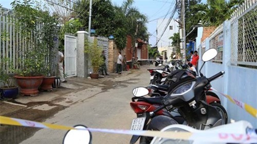 Lực lượng chức năng phong tỏa nghiêm ngặt con hẻm vào hiện trường.