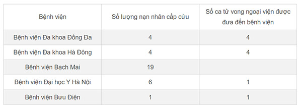 Cập nhật sơ bộ số lượng nạn nhân cấp cứu tại các bệnh viện tính đến 9h sáng nay: