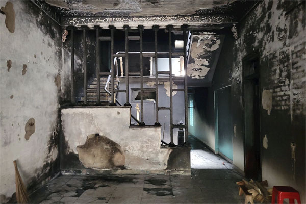 Một căn phòng trong tầng 2 phủ màu khói đen.