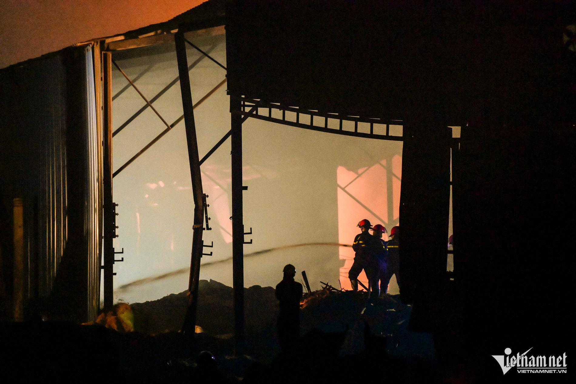 Ghi nhận của PV VietNamNet, 23h cùng ngày, khu vực quanh xưởng xảy ra hoả hoạn vẫn được phong tỏa nghiêm ngặt để đảm bảo an toàn. Bầu không khí xung quanh hiện trường vụ cháy nồng nặc mùi khét.