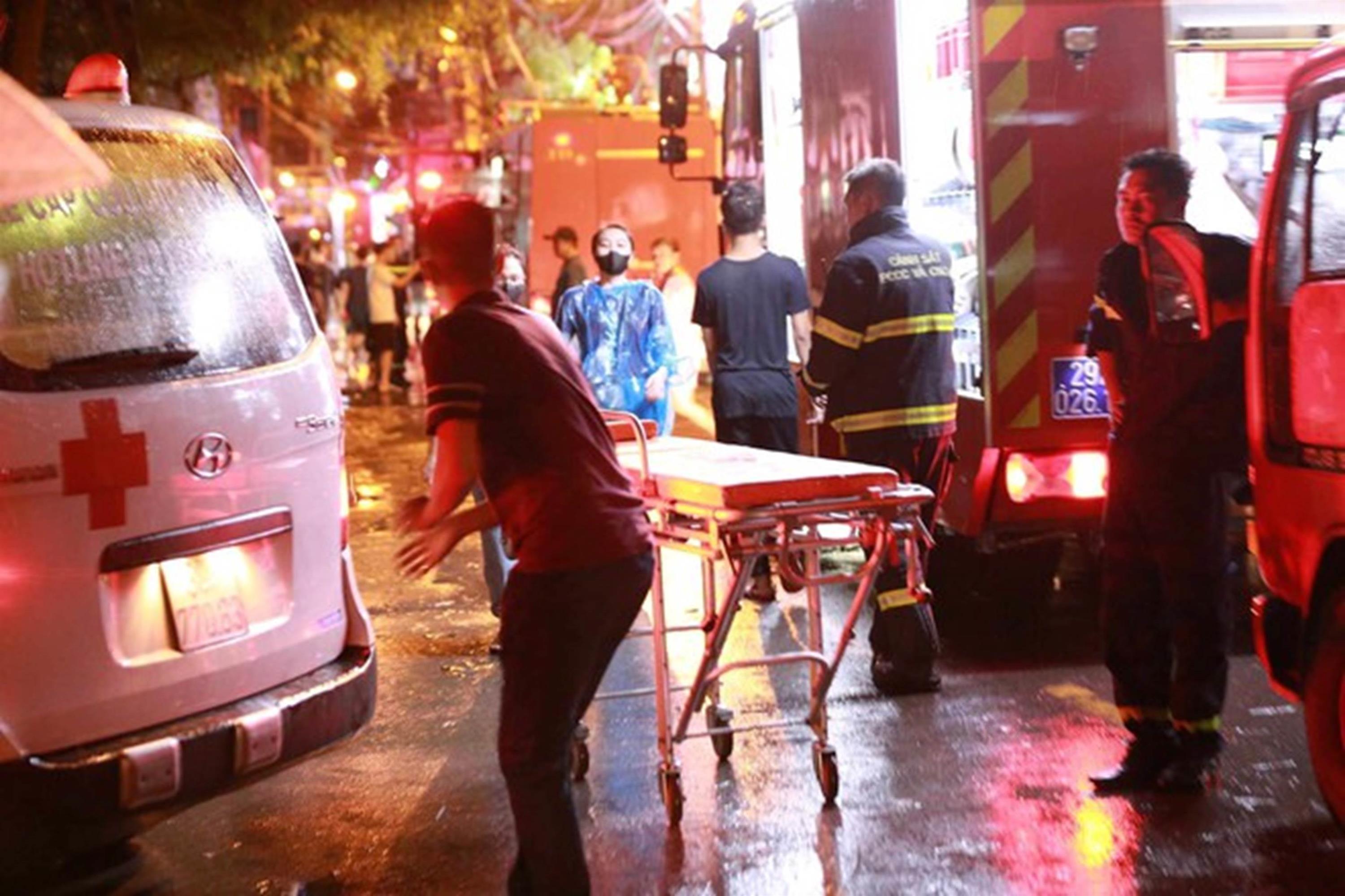 Trước đó, theo ghi nhận của PV, khoảng 21h50 cùng ngày, các nạn nhân được quấn chăn đưa ra xe cứu thương khỏi hiện trường. Theo ghi nhận của phóng viên, có 3 xe cứu thương đã rời khỏi hiện trường.