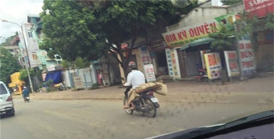 anh, hình ảnh người đàn ông điều khiển xe máy chở vật thể được cho là