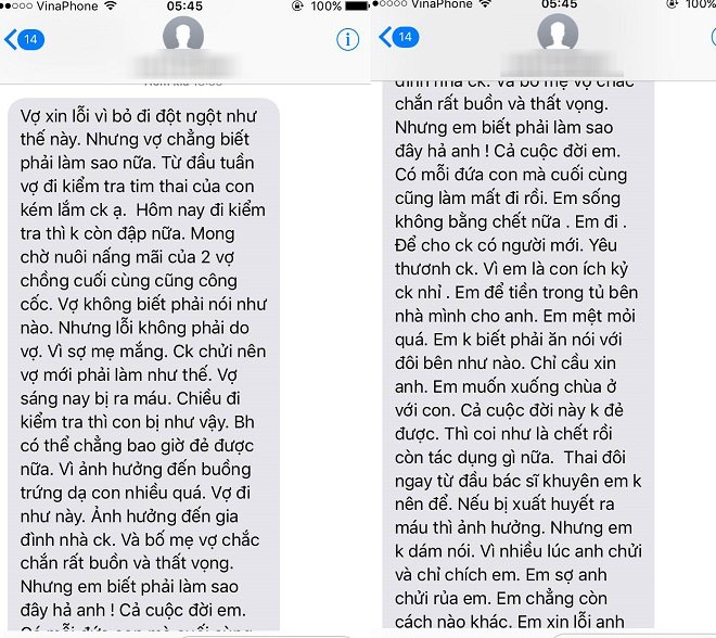 Theo chị T., thời điểm M. báo tin cho chồng biết thai lưu và đã bỏ thai thì cái thai thực ra đã bị lưu từ khoảng 2 tuần trước và M. đã lặng lẽ nhờ y học can thiệp để bỏ con.