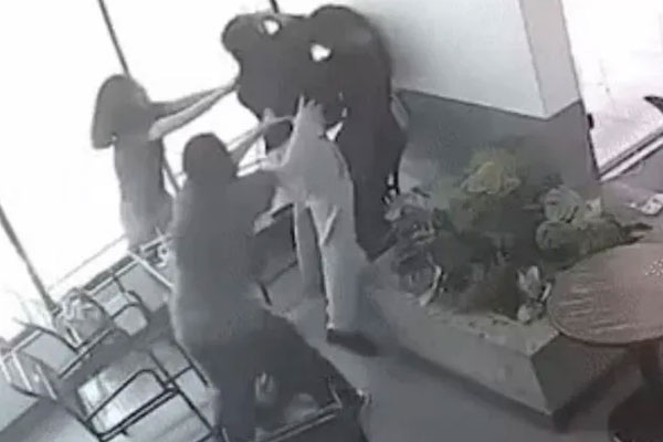 Camera tại quán cà phê ghi lại vụ hành hung - Ảnh cắt từ clip