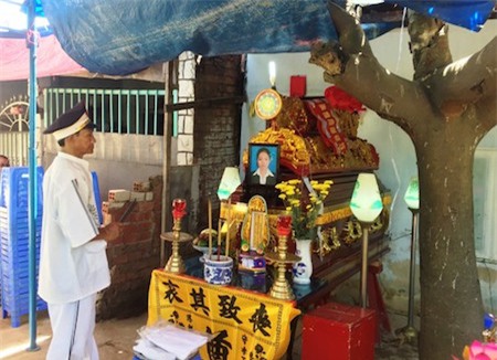 Khoảng 10 giờ sáng cùng ngày, đông đảo người dân tụ tập trước cửa căn nhà cấp 4 ở khu phố 9, phường Trường Thọ, quận Thủ Đức, để chia buồn cùng gia đình anh Phong. Chứng kiến đứa con trai 7 tuổi của anh Phong vô tư cười đùa trước di ảnh mẹ, nhiều người không kìm được nước mắt.