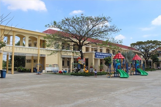 Trường Tiểu học Bình Chánh - nơi xảy ra vụ việc "cô giáo quỳ gối" (ảnh: LĐO)