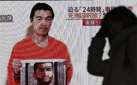 Sự thay đổi này được thấy rõ trong đoạn video đầu tiên được IS công bố ngày 20/1, trong đó một phiến quân IS bịt mặt nắm chặt một con dao đứng cạnh Goto và Haruna Yukawa - một con tin người Nhật khác. Tên phiến quân này đòi Chính phủ Nhật Bản trả tiền chuộc con tin là 200 triệu USD.