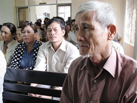 Ông Ngô Văn Cộ (cha nạn nhân Ngô Thanh Kiều) thẫn thờ nghe các bị cáo khai thay nhau đánh chết con mình |