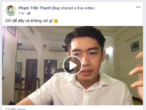 Anh cho biết, mục đích livestream là cảnh báo cho các anh chị em nghệ sĩ rằng người này không hề đáng tin tưởng. Anh cũng mong người này liên lạc với anh để giải quyết chuyện trong êm đẹp. Nam vũ công cũng nhắn nhủ rằng anh không tiết lộ danh tính vì muốn cho người này cơ hội và hi vọng trong vòng 3 ngày liên lạc với anh để cho một cuộc gặp mặt.