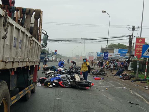 Sau khi xảy ra tai nạn, nhiều người dân chạy tới thì thấy xe máy và nạn nhân nằm la liệt. Nhiều người được đưa đi cấp cứu nhưng rất nguy kịch.