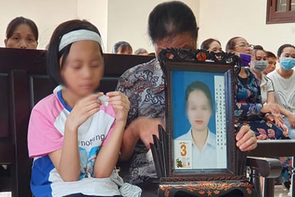 Ngày diễn ra phiên toà xét xử, người thân bị hại ôm di ảnh chị H. cùng 3 đứa con nhỏ đến toà. Chứng kiến cảnh 3 đứa con thơ nheo nhóc mất mẹ nhiều người không cầm được nước mắt còn người mẹ thân sinh ra chị H. bị điếc nên bà chỉ biết gục đầu ôm di ảnh con gái khóc nức nở.
