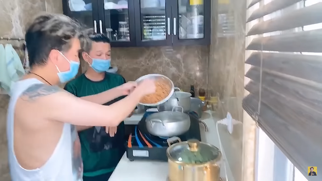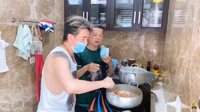 Chưa dừng lại ở đó, cả hai vẫn tiếp tục cãi nhau chuyện đeo khẩu trang hay không đeo. Đàm Vĩnh Hưng muốn đeo khẩu trang khi nấu, còn Vũ Hà lại cho rằng không cần đeo vì đằng nào thức ăn cũng nấu chín. Anh nói: "Mày chỉ được cái over hóa".