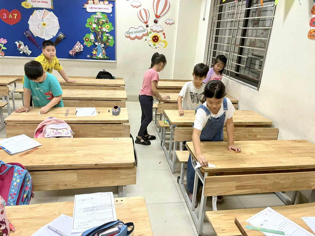 Cụ thể, 64 trường mầm non, tiểu học, trung học cơ sở cùng 72 lớp mầm non độc lập đã tập trung nhân lực khử khuẩn, tổng vệ sinh trường lớp học, đảm bảo vệ sinh, chống dịch bệnh.