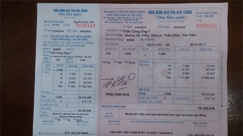 Hóa đơn tiền nước cao bất thường của tính cho gia đình ông Ứng