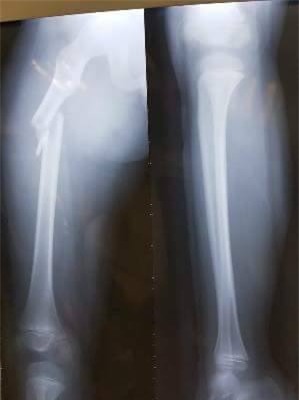 Ảnh chụp X -quang xương chân bị gãy của học sinh Trần Chí Kiên.