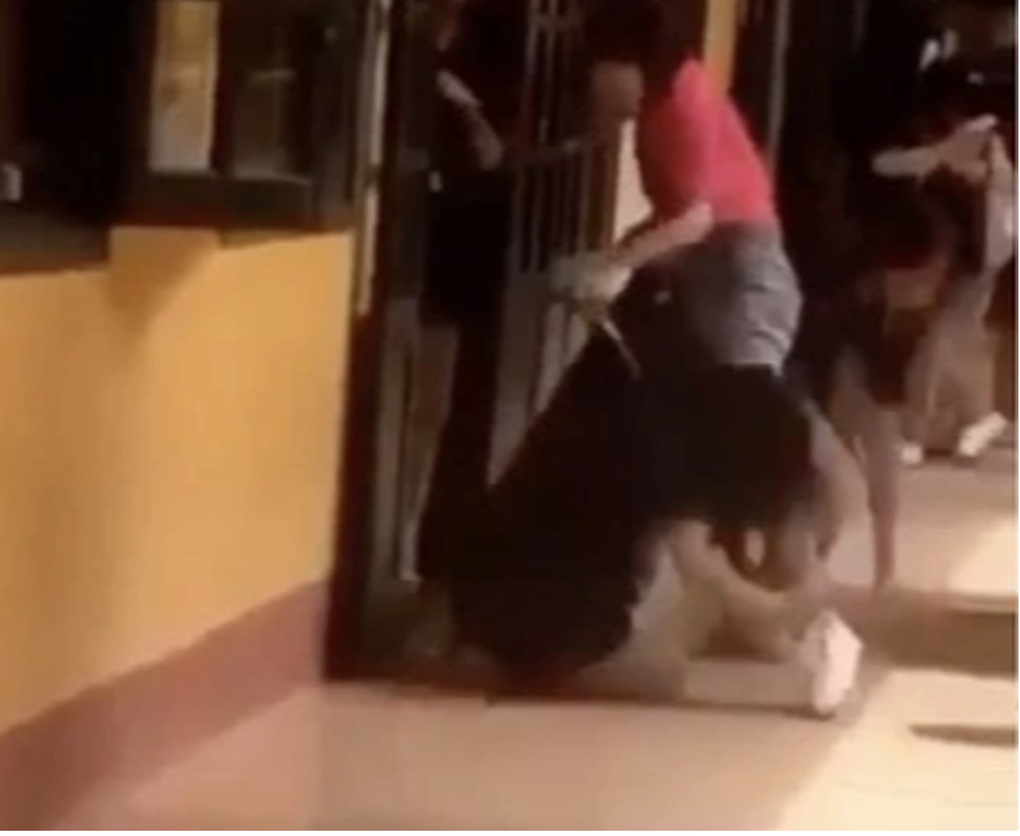 Trước đó, mạng xã hội đăng tải clip nữ sinh quỳ khóc kiệt sức trước cửa lớp. Một lát sau, cô giáo Phượng túm cổ áo kéo lê em vào lớp.