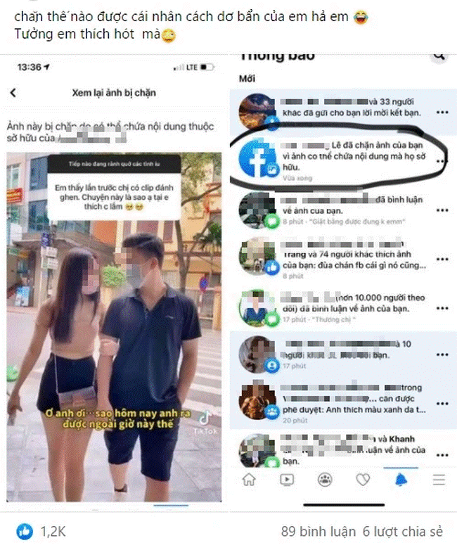 Sau đó, cô vợ lại thể hiện sự bức xúc khi hot girl kia chặn những hình ảnh liên quan đến sự việc mà cô đăng lên. Cô vợ mỉa mai: "Chặn thế nào được cái nhân cách dơ bẩn của em hả em".
