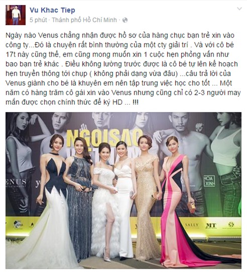 Mới đây, giám đốc của công ty Venus đã đăng tải trạng thái trên trang cá nhân như câu trả lời về kết quả của buổi phỏng vấn giữa Thúy Vi và công ty.