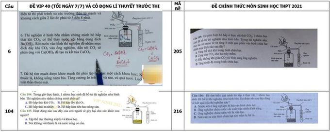 Đề thi chính thức và đề ôn tập của thầy Phan Khắc Nghệ ở Hà Tĩnh giống nhau đến cả hình vẽ thí nghiệm (Ảnh: Đ.H).