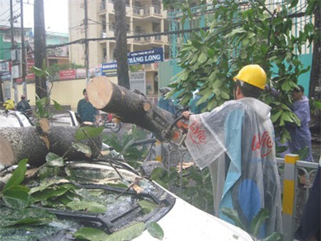 Công nhân Công ty Công viên Cây xanh vất vả hằng ngày để giữ gìn sự sạch đẹp của TP. Ảnh: Sỹ Đông |