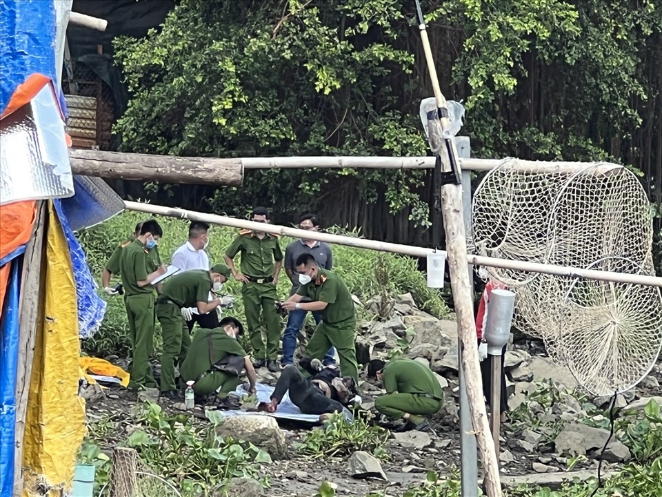 Công an khám nghiệm hiện trường nơi phát hiện thi thể nam sinh Nguyễn Văn Nghĩa.