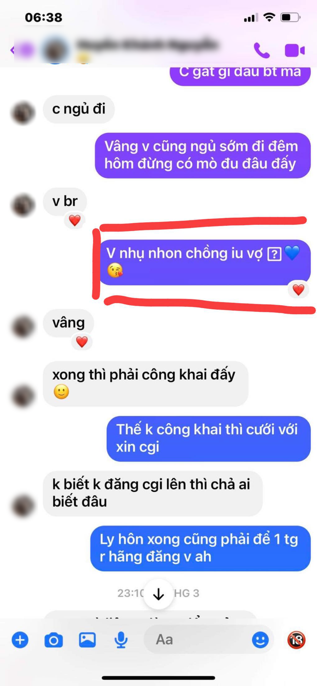 Trong đoạn tin nhắn, anh chồng rất chăm lo cho tiểu tam, thường hỏi cô nàng thích ăn gì, uống gì để mua, tối đến nhắn tin chúc ngủ ngon. Tiểu tam không những bắt nhân tình "đấm lưng, gội đầu, tặng quà 8/3" mà thậm chí còn bắt anh chồng phải công khai chuyện tình cảm, đăng ảnh chụp chung để mọi người cùng biết. Đã vậy, cô ta còn ghen ngược khi biết người chồng vẫn thường ngủ chung cùng vợ.