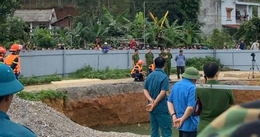 “Hố sụt rất lớn, bên dưới có nhiều đá và nước, đặc biệt có những khoang rỗng như hàm ếch khiến việc tiếp cận trở nên nguy hiểm. Dù đã dùng máy bơm công suất lớn, nhưng lượng nước vẫn còn sâu, gây trở ngại lớn cho việc hút cạn đáy hố,” anh Thái chia sẻ.