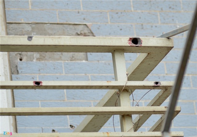 Thậm chí, khung cửa sắt, lan can kim loại cũng bị đâm xuyên sau tiếng nổ. |