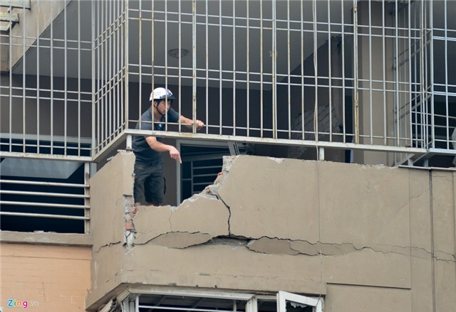 Còn 6 ngôi nhà liền kề từ số 13-18 dãy TT20 bị hư hỏng nặng kết cấu, tường nhà nứt vỡ nghiêm trọng. |