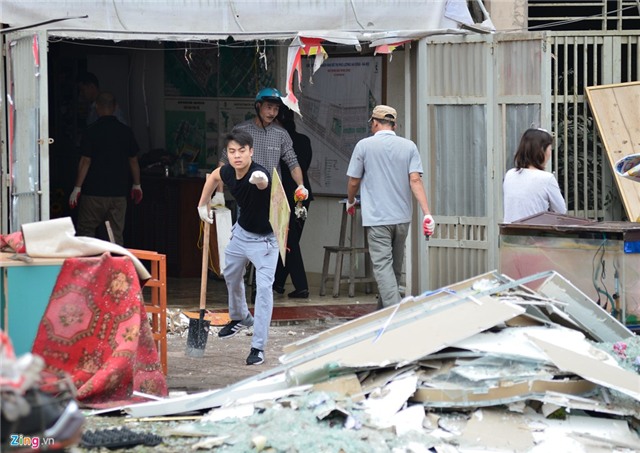 Trong buổi sáng ngày 20/3, người dân trở lại dọn dẹp, thu gom đồ đạc còn dùng còn sót lại. |